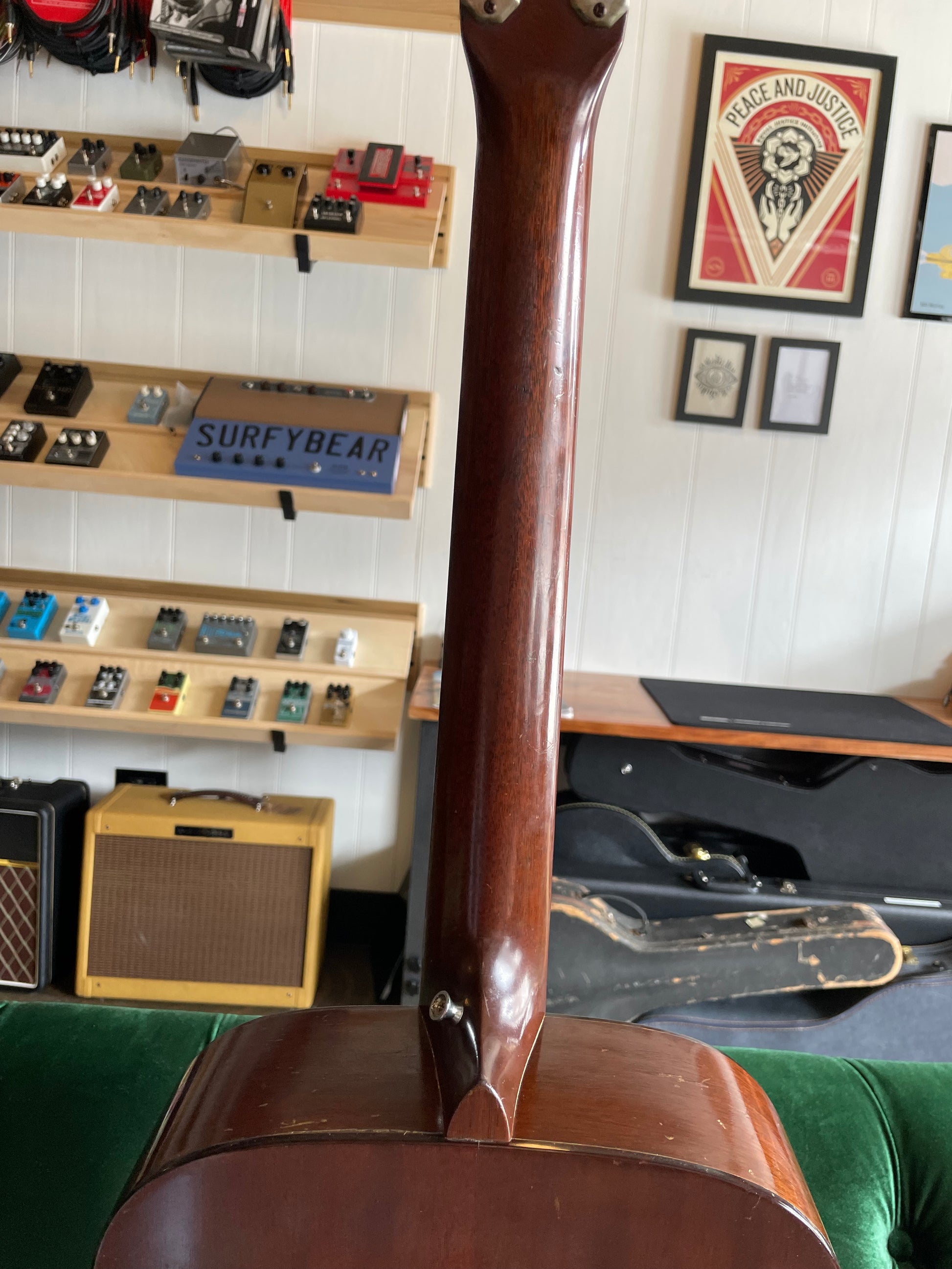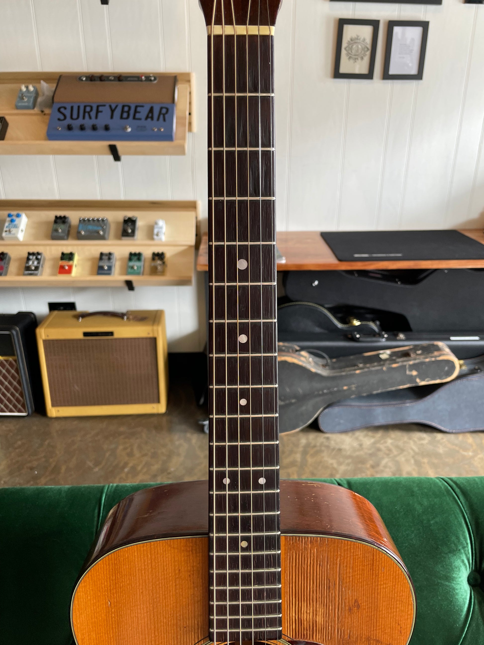A dream instrument for many. The 00-18 is famous for it’s simplicity, easy playability and classic sound. Popular among songwriters such as Bob Dylan, the spruce top and mahogany back and sides make for a classic and enjoyable tone. And the short scale and small to medium sized body make it simple and easy to play. This specific one came from a very special owner who has owned it since 1970. This guitar has been featured on a number of notable records and tours. It is in fantastic condition with beautiful signs of age. Call the shop for more details. Comes with a HSC.