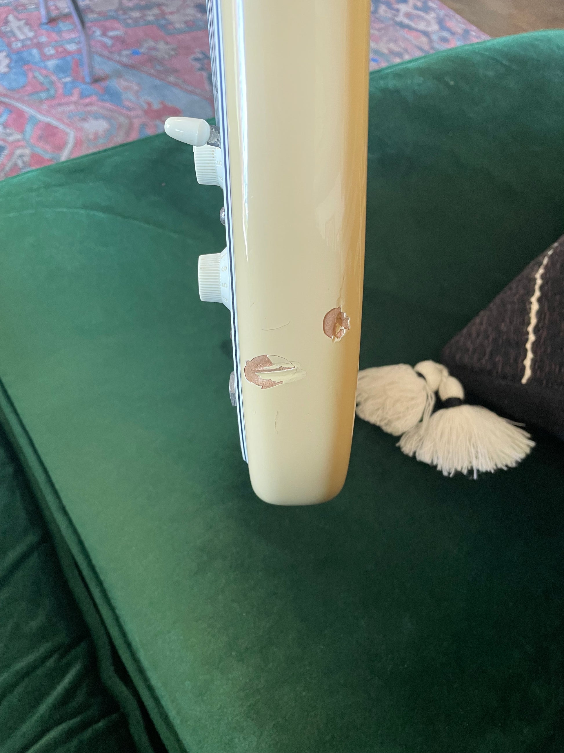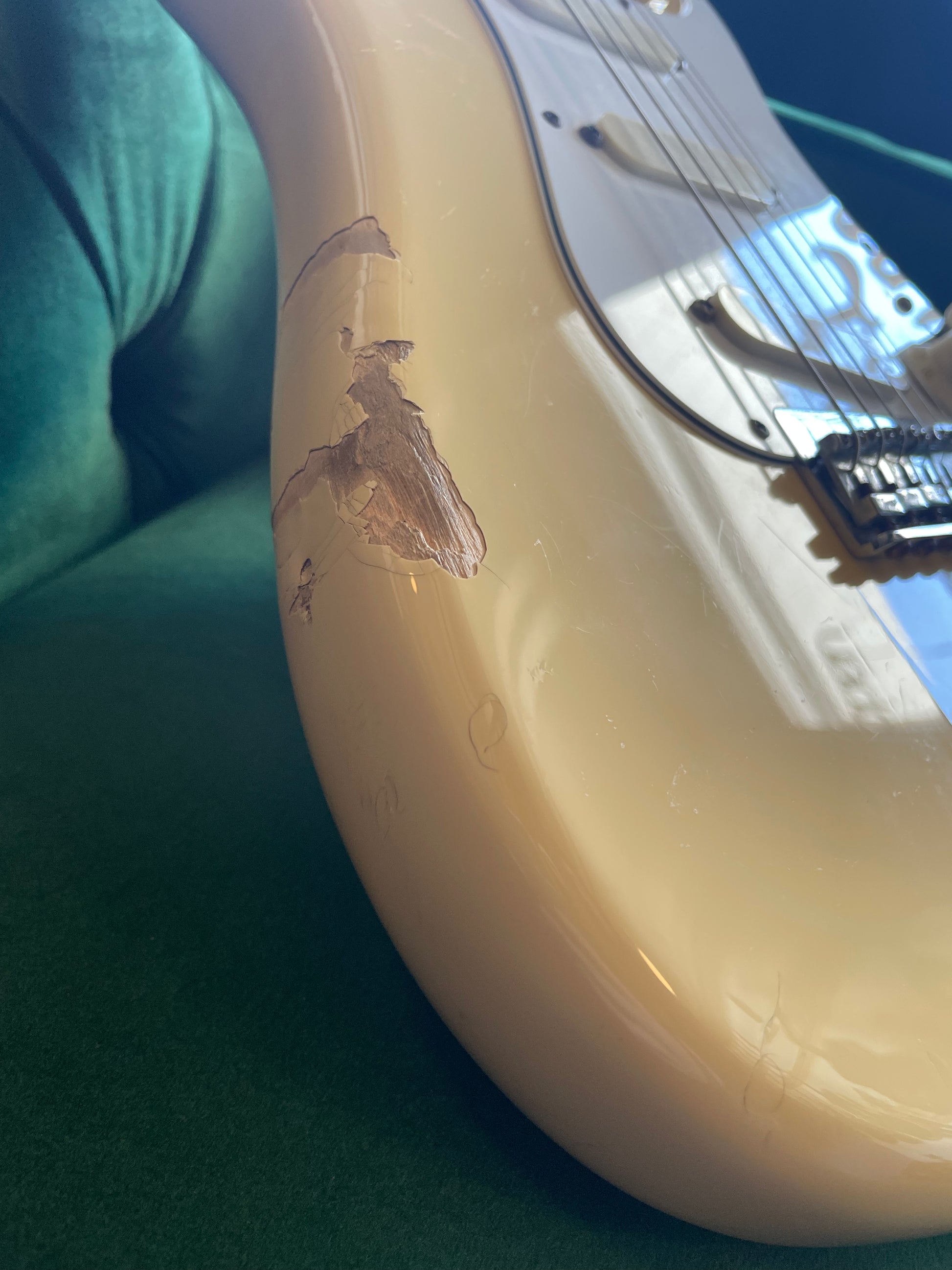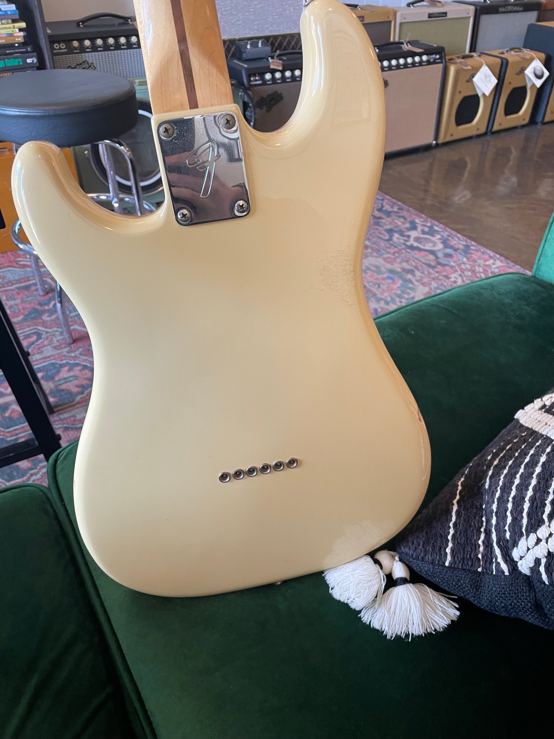 This is an all-original piece. The pickups sound incredible and the frets still have a lot of life in them. With a simple two knob (volume and tone) configuration, this Stratocaster has everything a player needs, with no weird quirks.