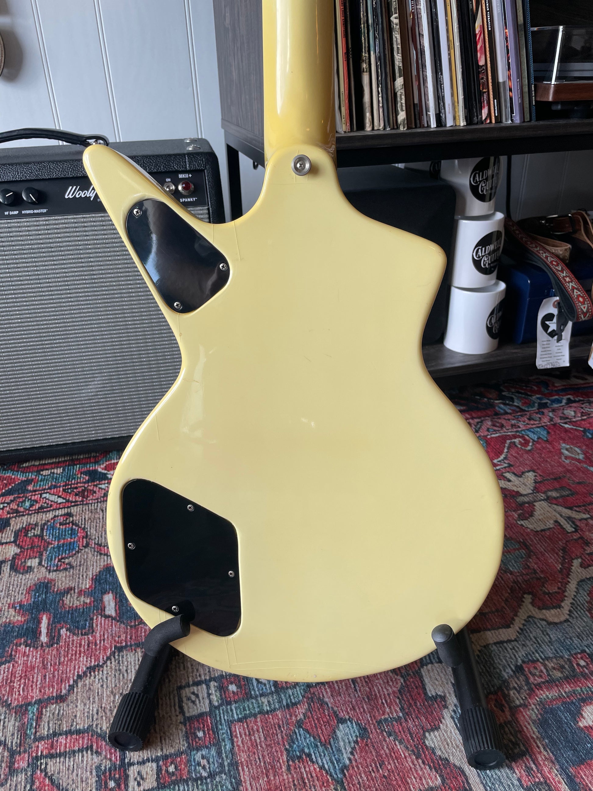 We’ve got this awesome, all original 1980 Dean E’lite here at Caldwell Guitars Nashville. First endorsed by Kerry Livgren from Kansas, the E’lite is one of many models of guitar by Dean that influenced many players and changed the way we imagine the guitar. This particular Dean sounds and plays amazing, and has aged beautifully. Checking in the finish defines the authenticity of this Vintage instrument that is loved by many. Comes with the OHSC.