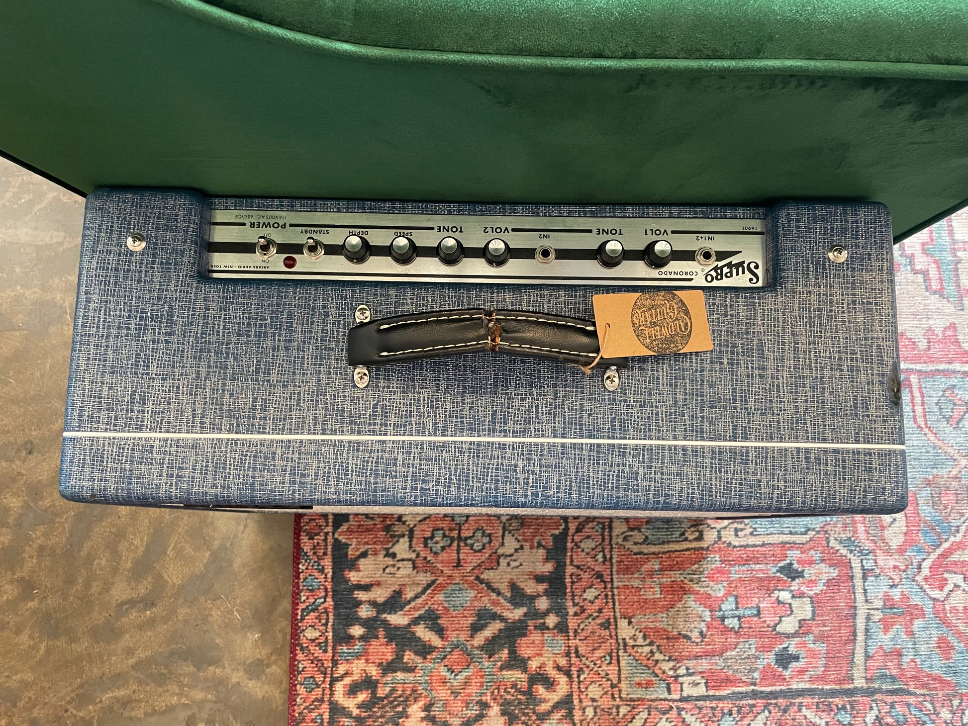 Here we have a used, but in great working condition, 2004 Supro Coronado 1690T. This amp has signs of wear but sounds clean and fantastic. The tubes are a year old. The Coronado has two channels with the ability to run channel one through channel two for greater wattage. Very clean and lots of head room at a good price.