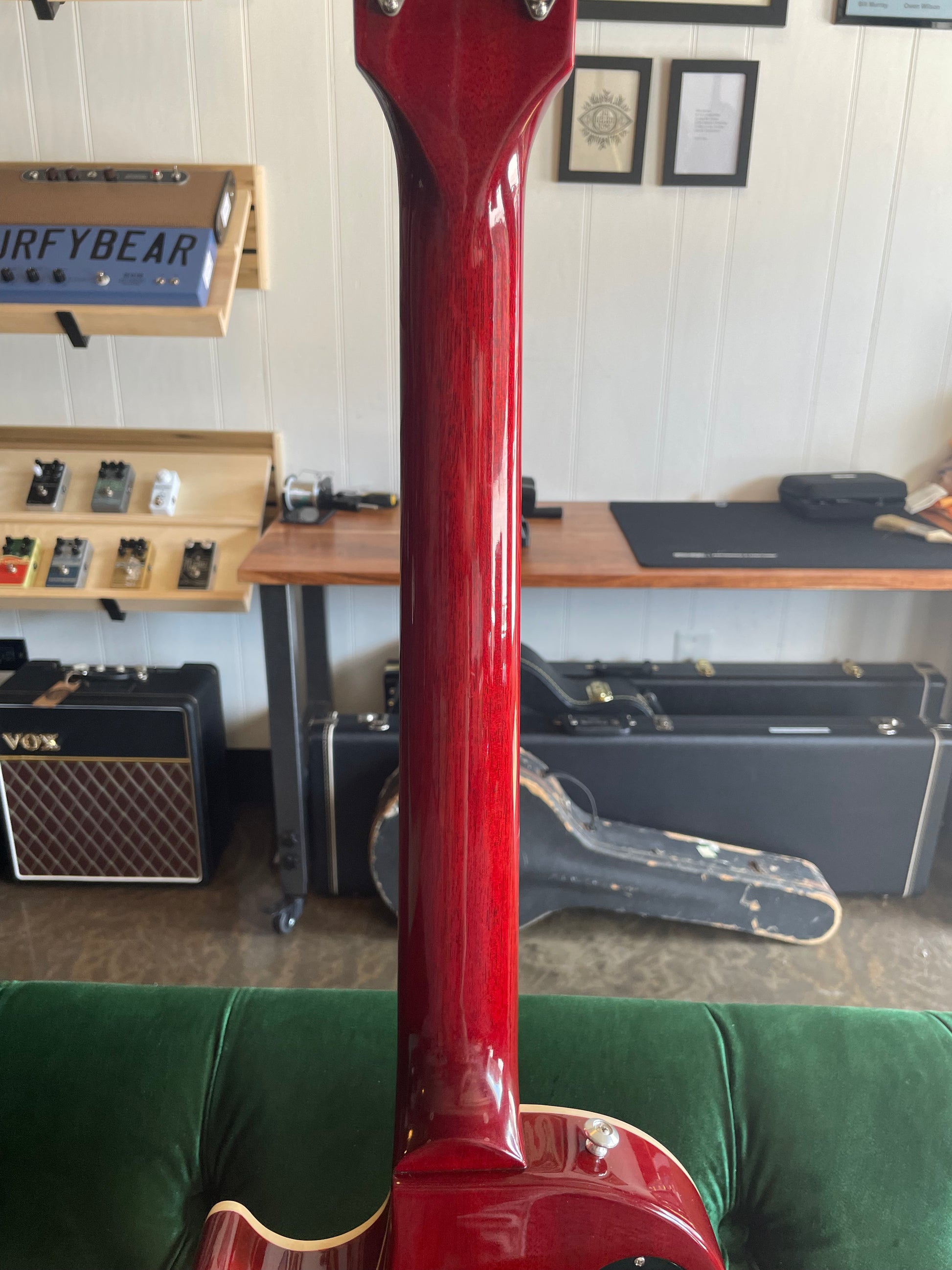 Here we have a beautiful les Paul standard in fantastic condition. This guitar has very light signs of use and is setup and playing very well. It has a gorgeous, transparent, light burst over a two piece flame maple top. This Les Paul is sure to please any player looking for a reliable Paul. Comes with the OHSC.