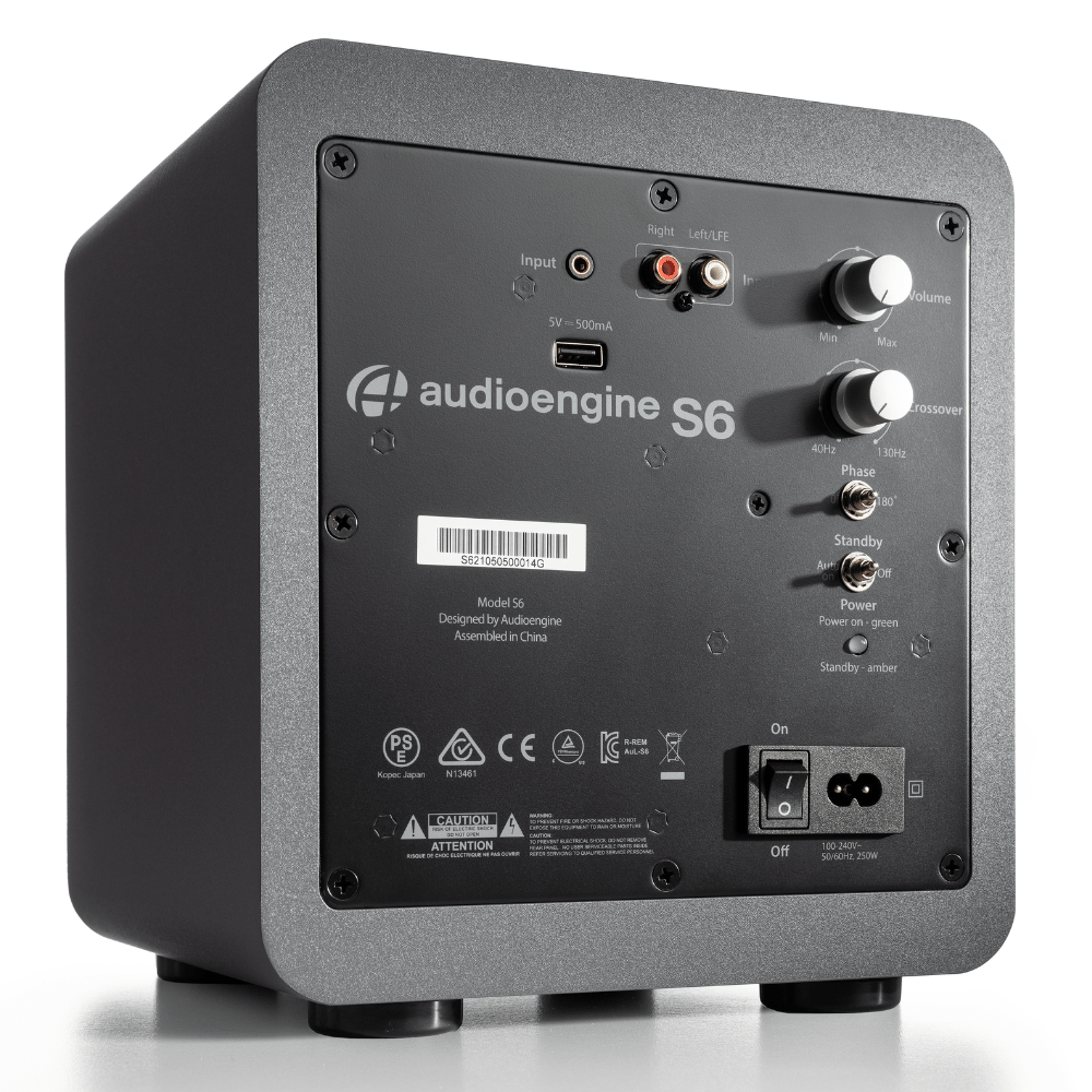 The Audioengine S6 sets a new standard in performance to size. With 210 watts of power in a small package that fits almost anywhere, the S6 is the ultimate bass extension for your desktop, home theater or gaming setup. With a front-firing woofer in a sealed box, The S6 delivers deep, smooth, and punchy bass that defies expectation.