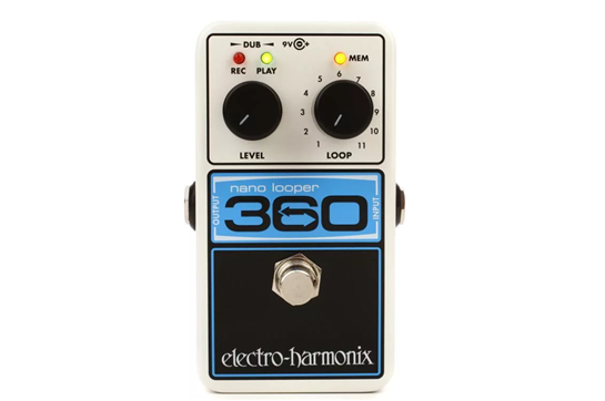 The EHX Nano Looper 360 takes the simple, easy-to-use format of a single pedal looper and and adds 11 memory slots for storage of your favorite creations. With 6 minutes of high-quality loop recording time, unlimited overdubs, and easy undo/redo functionality, Nano Looper 360 is compact looper for any pedalboard.