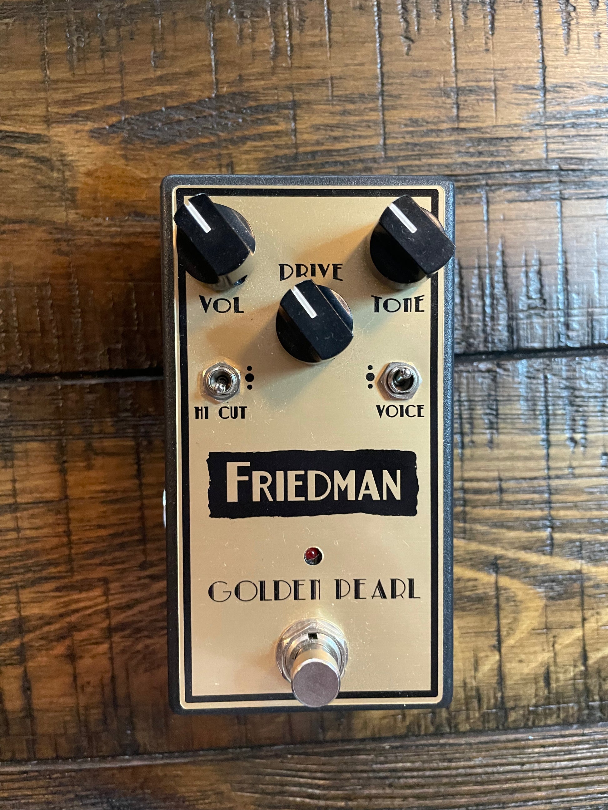 The Friedman Golden Pearl is a transparent, lower gain overdrive pedal designed to push already overdriven amps into seductive saturation. This versatile pedal can also be used into a clean amp to achieve that elusive semi-broken up tone.