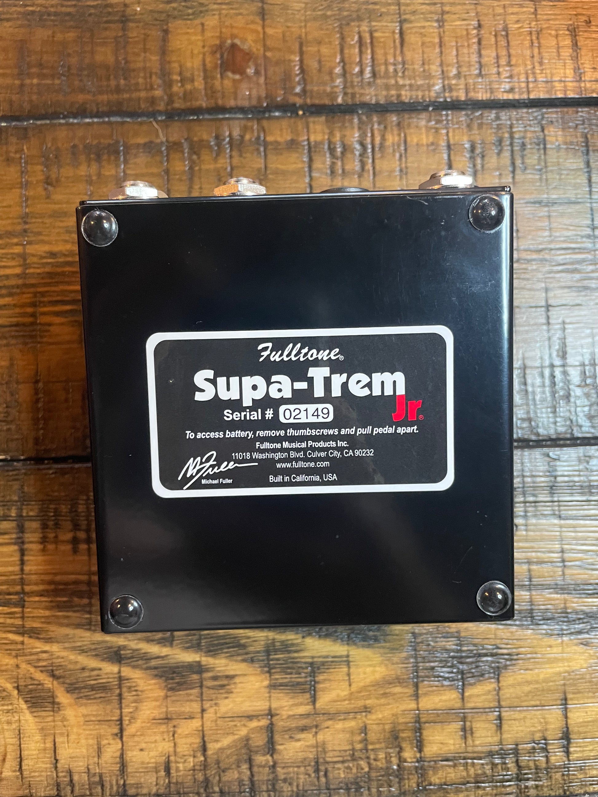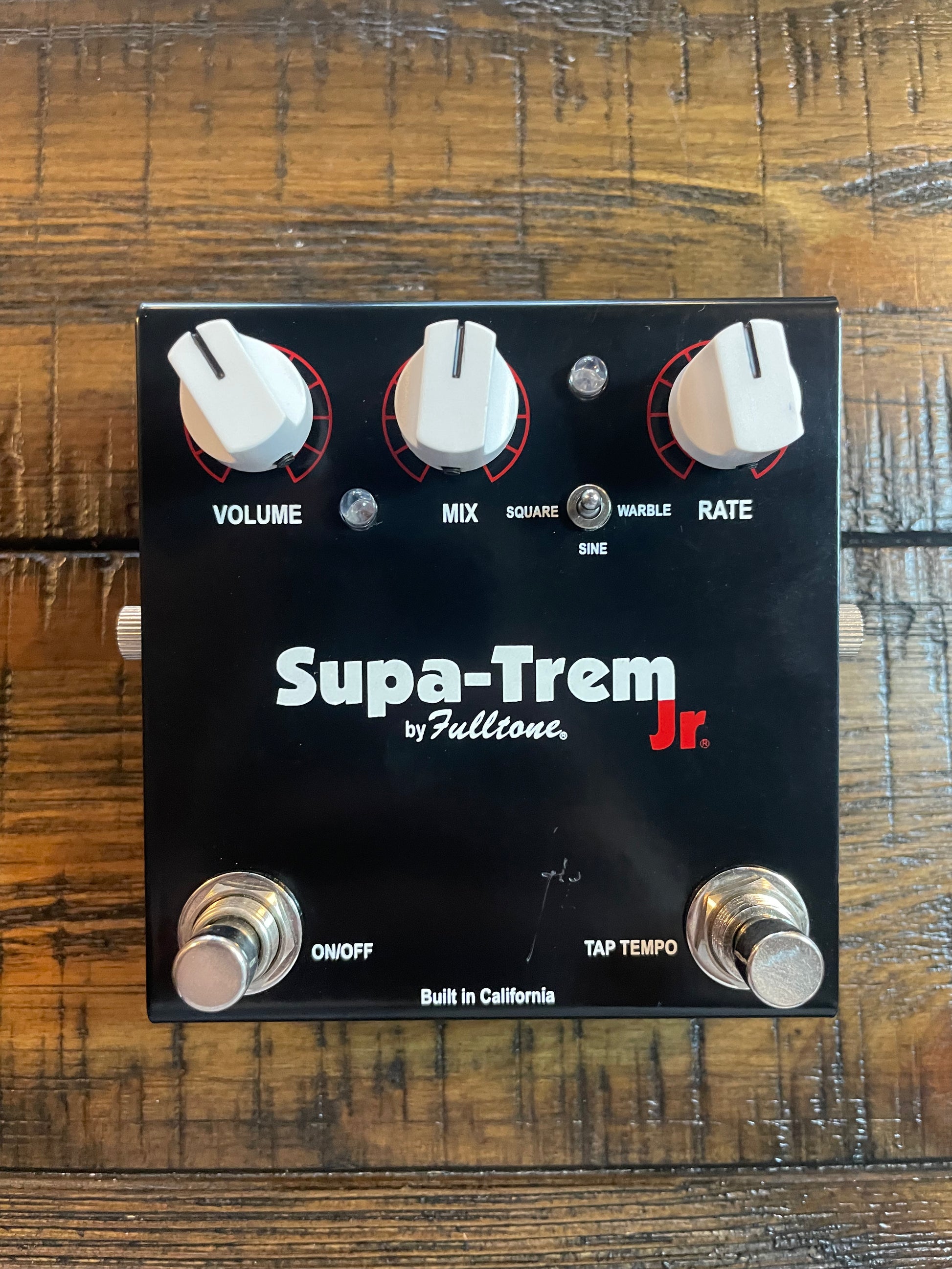 It's a much, much smaller than the ST-1 at only 3.9" wide x 4" deep, and more intelligent version of the epic Supa-Trem1. Sporting True-Bypass,Tap-Tempo, external Tap jack, Half/Double hold feature, up to 15dB boost, true Square, Sine, and the natural heartbeat-like Warble wave-forms! It also can do speeds so slow that a full cycle takes around 10 seconds, and fast speeds beyond 220bpm. The heart of the ST-1 is still there, the warm Analog Devices JFET preamp. And this pedal is so small it will fit in your pocket, and with its top-mounted jacks, will fit in any little spot on your board. Don't forget, just like the ST-1, the Jr also works as an incredible clean boost with the Mix control turned down!