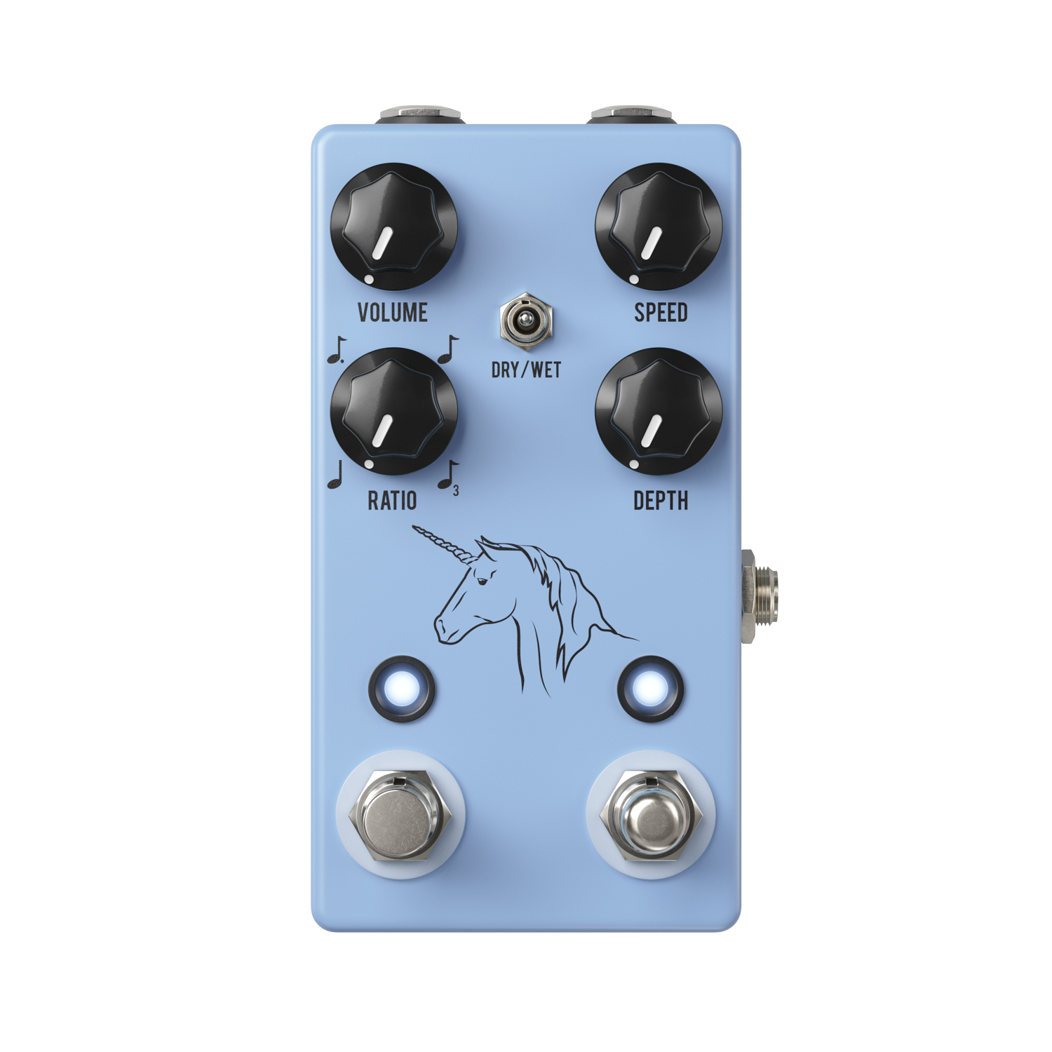 There are other analog vibe pedals and there are pedals with tap-tempo control, but-- if you’ll indulge us in a brief humble brag --the JHS Unicorn is the first to put ‘em together. Add optional external speed control and a ratio knob that determines the rhythmic subdivisions (or as we like to say, how much fairy dust enters into the flux capacitor of the Unicorn) and you have one of the most versatile vibe pedals on the market.