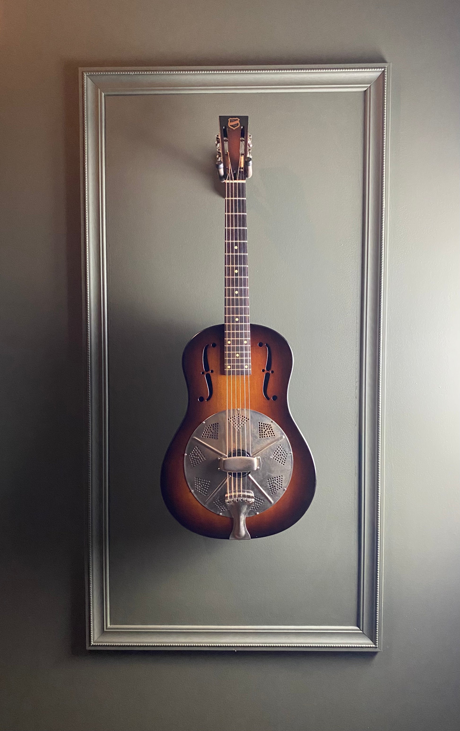 Fitted with an internal National resonator pickup. Delivers a nice bright tone. If you’re looking for a deeper electric tone, look into pairing this resonator with a preamp pedal.
