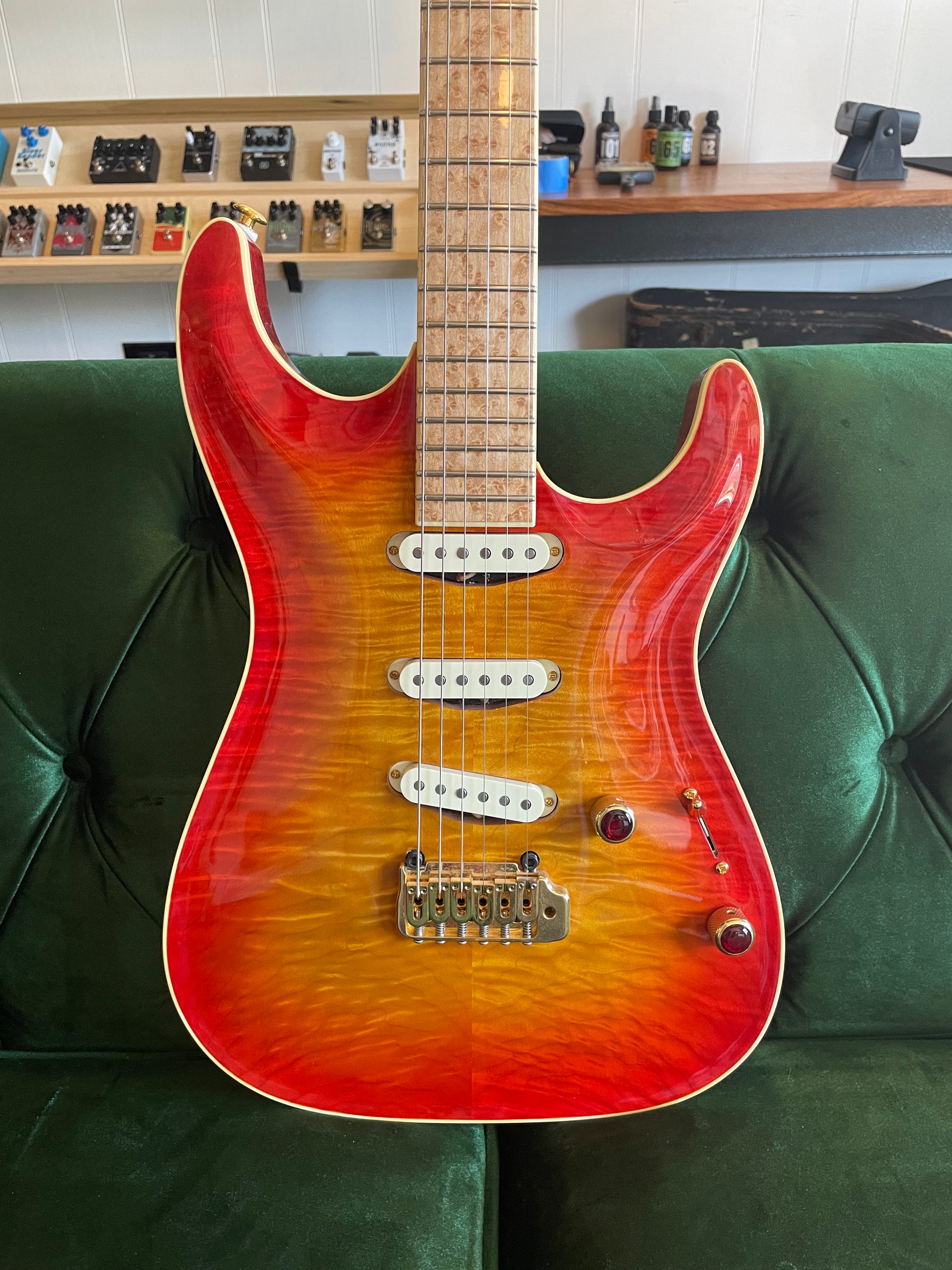 Fingerboard: Birdseye Maple Cap, Gold side Markers
