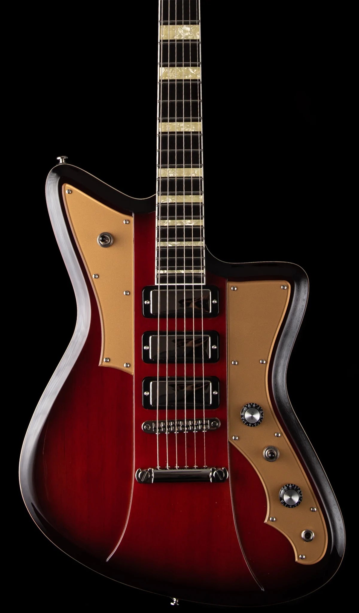 Like the Combinata, the Mondata features a double-bound chambered mahogany body with bound neck and vintage pearloid block inlays.