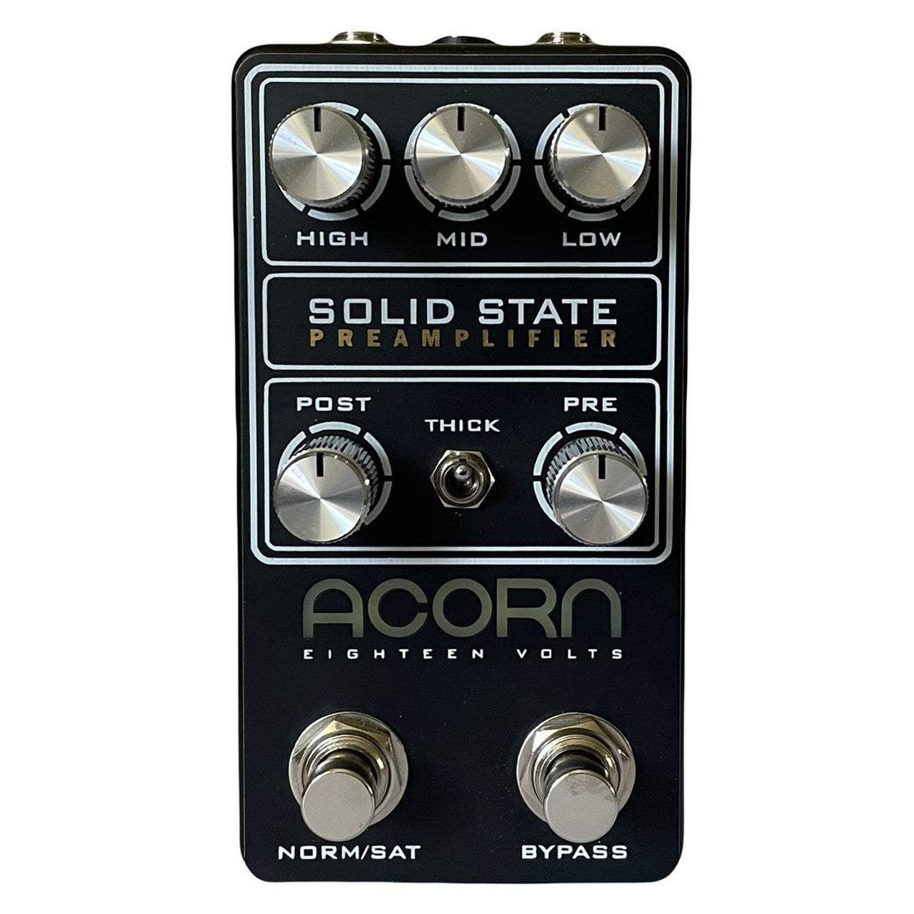 Can you say…Mississippi Marshall!?! A pedal inspired by some of the most iconic rock music from the past four decades. A studio secret weapon for achieving wiry and aggressive tones for guitar, bass, and even drums and vocals. The latest release from Acorn Amplifiers, the Solid State Preamplifier, is your way to recreate those highly sought after sounds. Packed into a slim pedal enclosure and loaded with features, the Solid State Preamplifier features the ‘normal’ and ‘saturated’ channels as foot-switchable tone modes, as well as an added ‘thick’ switch that provides heavy low end and added gain. Also, without the added cost of the power amp circuitry, the Solid State Preamplifier is nearly half of the price of the original Acorn Solid State Amp/Preamp.
